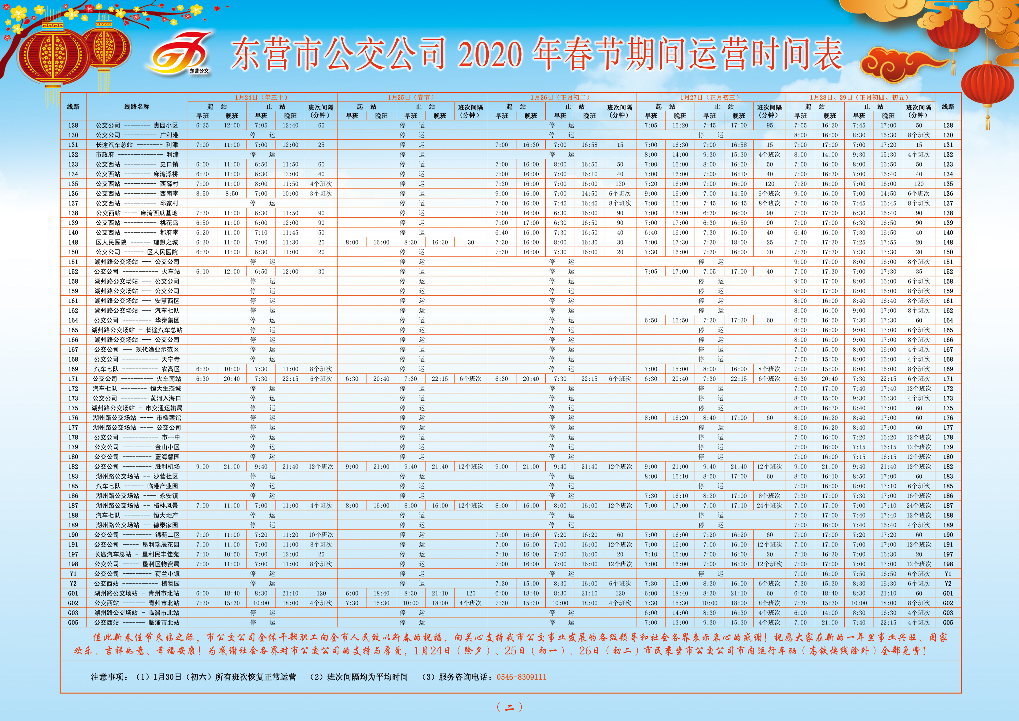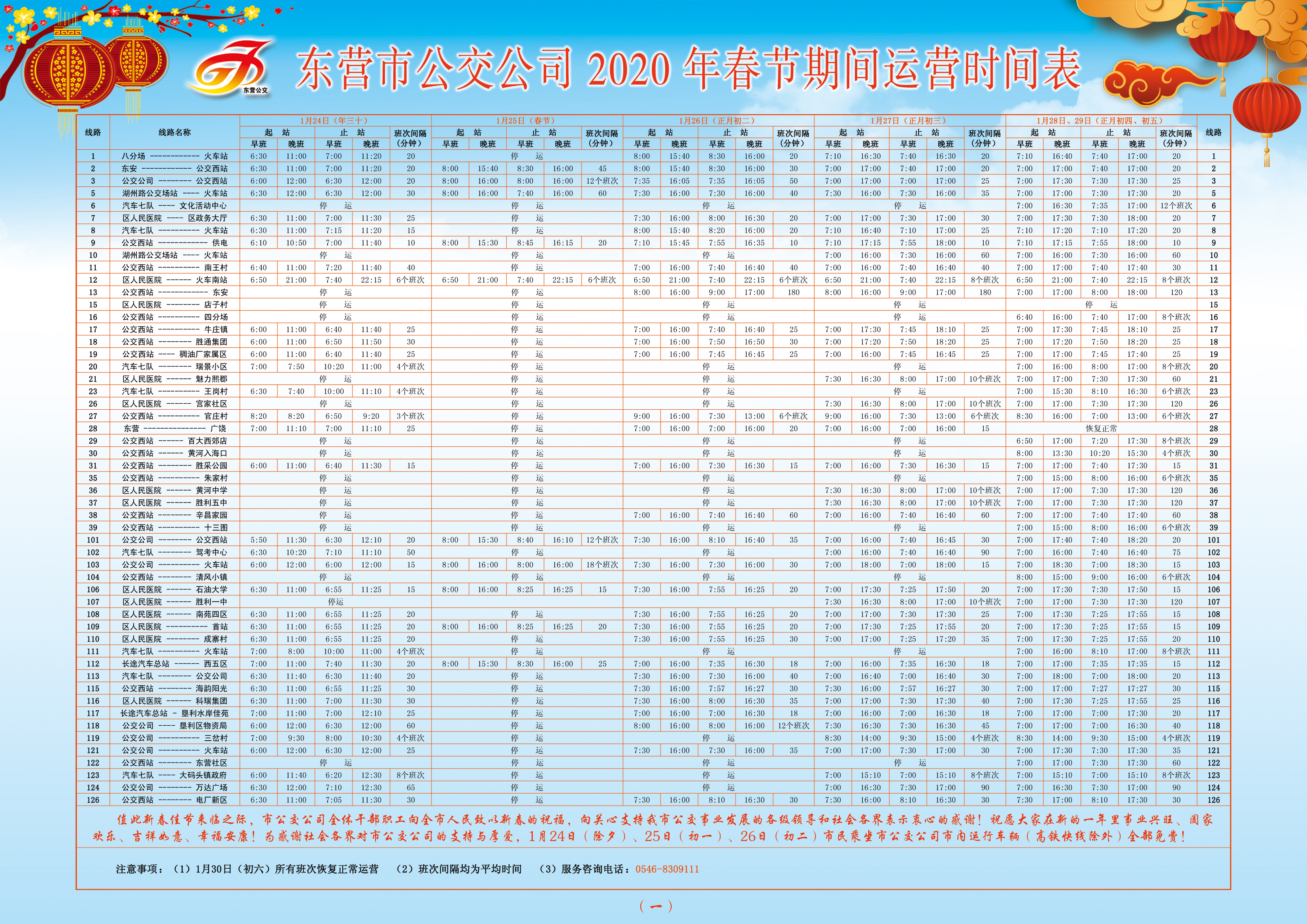 值此新春佳節(jié)來(lái)臨之際,市公交公司全體干部職工向全市人民致以新春的祝福,向關(guān)心支持我市公交事業(yè)發(fā)展的各級(jí)領(lǐng)導(dǎo)和社會(huì)各界表示衷心的感謝!祝愿大家在新的一年里事業(yè)興旺、闔家歡樂(lè)、吉祥如意、幸福安康!為感謝社會(huì)各界對(duì)市公交公司的支持與厚愛(ài),1月24日(除夕)、25日(初一)、26日(初二)市民乘坐市公交公司市內(nèi)運(yùn)行車輛(高鐵快線除外)全部免費(fèi)!