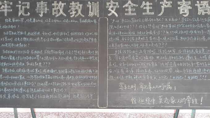 近日,市公交公司汽車三隊為貫徹落實好公司第四季度安委會的會議精神,做好駕駛員工安全教育,進一步抓好車隊安全生產(chǎn)工作,一是針對鄉(xiāng)鎮(zhèn)線路的營運特點,專門出了一期“安全生產(chǎn)黑板報”,二是專門制作了一幅以“注重安全,關(guān)愛生命”為主題的展板,擺放到大廳里,以此警醒和告誡廣大一線駕駛員,行車中要把安全放在首位,牢記遵紀(jì)守法,按章行車、謹(jǐn)慎駕駛、確保安全。