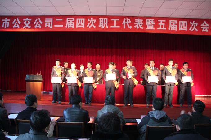 大會由市公交公司副經理李學忠同志主持,趙龍副經理宣讀了2013年公司先進集體、先進個人及優(yōu)秀黨組織的表彰決定,并進行了頒獎儀式。會議審議通過了公司經理朱新民同志做的《2013年公司工作報告》、工會主席崔磊做的《2013年公司工會工作報告》,會議還審議通過了《公司2013年財務工作報告》、《公司行車安全制度修改草案》和《公司稽查管理規(guī)定修改草案》等事項。