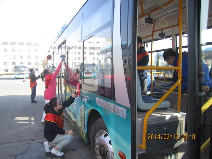 3月15日上午,市公交公司汽車一隊聯(lián)合東營市職業(yè)學(xué)院開展了學(xué)雷鋒活動。來自該校經(jīng)濟貿(mào)易與管理學(xué)院的大學(xué)生和車隊職工共計28人,分兩個小組,一組乘坐公交車上路為特需乘客服務(wù),幫助疏導(dǎo)乘客;一組幫助駕駛員擦拭車身,清掃車廂衛(wèi)生。大家工作起來井然有序,有條不紊,尤其活躍在車廂為乘客服務(wù)的志愿者們,更是得到了乘客的一致好評,成為公交車上一道亮麗的風(fēng)景。