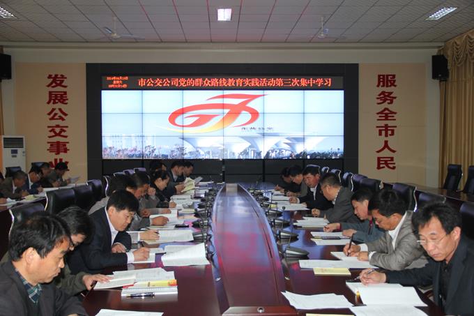 為深入推進(jìn)教育實(shí)踐活動(dòng)開展,加強(qiáng)黨的群眾路線理論武裝,市公交公司黨的群眾路線教育實(shí)踐活動(dòng)第三次集中學(xué)習(xí)于4月19日組織開展。主要學(xué)習(xí)了《厲行節(jié)約、反對(duì)浪費(fèi)》重要論述摘編和《黨的群眾路線教育實(shí)踐活動(dòng)學(xué)習(xí)文件選編》等材料。全體黨員認(rèn)真聆聽,詳細(xì)記錄,堅(jiān)持原汁原味、原原本本,通過(guò)系統(tǒng)研讀,實(shí)現(xiàn)理論提升、思想升華。