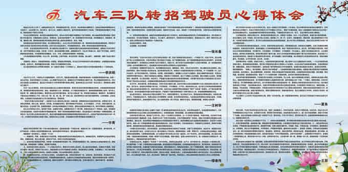 近日,市公交公司為鍛造基層車隊學比趕超的濃厚工作氛圍,促進廣大職工進一步轉變工作作風,做到學有榜樣,趕有目標。汽車三隊組織2014年度公司轉招的駕駛員書寫了“轉招駕駛員工作經(jīng)驗及心得體會”,并制作成展板放在辦公樓大廳,供全體職工瀏覽觀看,激發(fā)大家從中學習轉招人員工作中那種安全駕駛、優(yōu)質服務、樂于助人、團結同事的良好工作態(tài)度,以及低調(diào)務實、任勞任怨、埋頭苦干、持之以恒、頑強拼搏的進取精神,以此推動車隊整體工作再上新臺階。