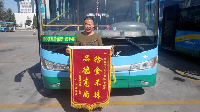 近日,廣北農(nóng)場的丁友戶女士拿著一面寫有“拾金不昧、品德高尚”的錦旗來到市公交公司汽車一隊(duì),感謝車隊(duì)駕駛員李左田師傅的高尚品德。據(jù)車隊(duì)了解得知,9月28日上午,丁友戶女士乘坐李左田師傅駕駛的123路公交車去東城辦事,下車以后發(fā)現(xiàn)裝有現(xiàn)金(1600元)、手機(jī)和銀行卡等物品的拎包不見了,她心急如焚。然后抱著試試看的想法來到公交公司汽車一隊(duì)調(diào)度室門口,正好遇到拿著包準(zhǔn)備上交車隊(duì)的李左田師傅。原來,李師傅利用班次間隙打掃車內(nèi)衛(wèi)生時(shí),無意間發(fā)現(xiàn)座椅上有個(gè)包,心想丟包的乘客一定很著急,便放下手里的活,拿著包直奔車隊(duì)辦公室,碰巧遇到前來尋包的丁女士。車隊(duì)及時(shí)核對情況后,將該拎包物歸原主。