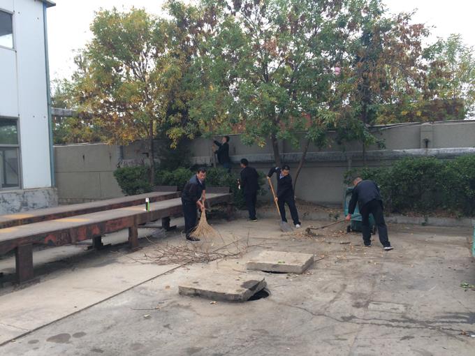 衛(wèi)生大掃除中,他們或三人一伙,或五人一組,有的負責修剪參差不齊的綠化帶,有的負責清理枯黃的雜草,有的負責拿著垃圾袋拾撿煙頭,有的負責清掃被風卷到墻角的垃圾,有的負責裝卸和拖運垃圾箱,一個個忙的滿頭大汗,即使飛揚的塵土沾滿了衣服也全然不顧,令人為之動容。