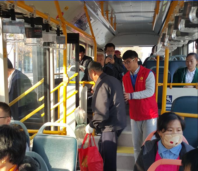 為進(jìn)一步營(yíng)造文明城市復(fù)核迎測(cè)的濃厚氛圍,弘揚(yáng)“奉獻(xiàn)、友愛、互助、進(jìn)步”的志愿服務(wù)精神,踐行常態(tài)化志愿服務(wù)機(jī)制,市公交公司于10月31日上午聯(lián)合職業(yè)學(xué)院開展了志愿服務(wù)活動(dòng)。志愿服務(wù)活動(dòng)主要是引導(dǎo)乘客有序乘車,幫助老弱病殘?jiān)械忍厥獬丝蛢?yōu)先乘車及主動(dòng)為老弱病殘?jiān)凶屪虺珜?dǎo)乘客保持車廂衛(wèi)生以及引導(dǎo)公交車輛規(guī)范??康鹊取?BR> 通過開展本次活動(dòng),既帶動(dòng)了廣大市民文明乘車,尊老愛幼,又樹立了公交品牌良好形象,向市民傳達(dá)了公交服務(wù)理念。志愿者們也通過自身弘揚(yáng)了志愿者樂于助人的精神,增強(qiáng)了志愿者團(tuán)隊(duì)間的凝聚力。