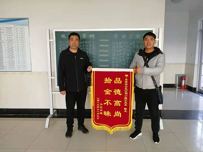 2019年11月18日下午,公交公司汽車三隊(duì)來了一名手拿錦旗的年輕小伙,說是要對31路駕駛員陳龍拾金不昧的行為表示感謝。