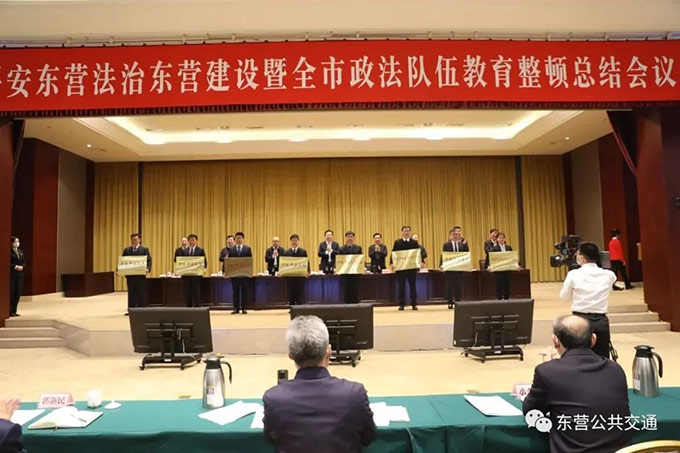 2022年3月3日下午,平安東營法治東營建設(shè)暨全市政法隊(duì)伍教育整頓總結(jié)會議召開,會議深入學(xué)習(xí)貫徹習(xí)近平法治思想和習(xí)近平總書記重要指示要求,認(rèn)真貫徹落實(shí)中央和省委有關(guān)會議精神,表揚(yáng)獎(jiǎng)勵(lì)先進(jìn),總結(jié)全市政法隊(duì)伍教育整頓工作,對深入推進(jìn)平安東營、法治東營建設(shè)進(jìn)行安排部署。市委書記楊國強(qiáng)出席會議并講話,市委副書記、市長陳必昌主持,市委副書記、政法委書記孫早軍出席。