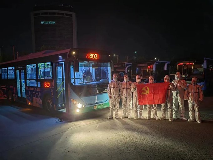 公司保修一廠副廠長(zhǎng)商同衛(wèi)凌晨2點(diǎn)半被電話驚醒,“根據(jù)防疫工作需要,抓緊組織咱們的人員凌晨3點(diǎn)前到公司就位,改裝轉(zhuǎn)運(yùn)車輛”,電話那頭傳來(lái)的是保修一廠負(fù)責(zé)人的聲音。商同衛(wèi)連忙從床上爬起來(lái)趕往公司,路上不停打電話通知其他同事,半個(gè)小時(shí)后保修一廠人員全部到位,他們與同樣接到任務(wù)的保修二廠的同事們一起,連夜完成了300臺(tái)公交車物理隔離改造,確保了車輛全部到達(dá)隔離轉(zhuǎn)運(yùn)條件。與此同時(shí),各車隊(duì)微信群也熱鬧起來(lái)?!耙咔楫?dāng)前,公司黨委號(hào)召連夜組建應(yīng)急轉(zhuǎn)運(yùn)隊(duì)伍,請(qǐng)大家根據(jù)個(gè)人家庭實(shí)際情況報(bào)名接龍”,這段話在公司各車隊(duì)的微信工作群一經(jīng)發(fā)出,就迅速得到了回應(yīng),也許是9月29日晚個(gè)別小區(qū)的封控讓大家提前感受到了疫情緊張的氣氛,此時(shí)雖已凌晨,但很多同志并未入睡?!瓣?duì)長(zhǎng),我第一個(gè)報(bào)名”“我是黨員我先上”“算我一個(gè)”,大家紛紛響應(yīng)公司黨委號(hào)召,踴躍報(bào)名。很快,由東、西城各車隊(duì)300名駕駛員和300臺(tái)完成物理隔離改裝的公交車組成的應(yīng)急轉(zhuǎn)運(yùn)隊(duì)伍9月30日早6時(shí)前就組建并按區(qū)域集結(jié)到位。