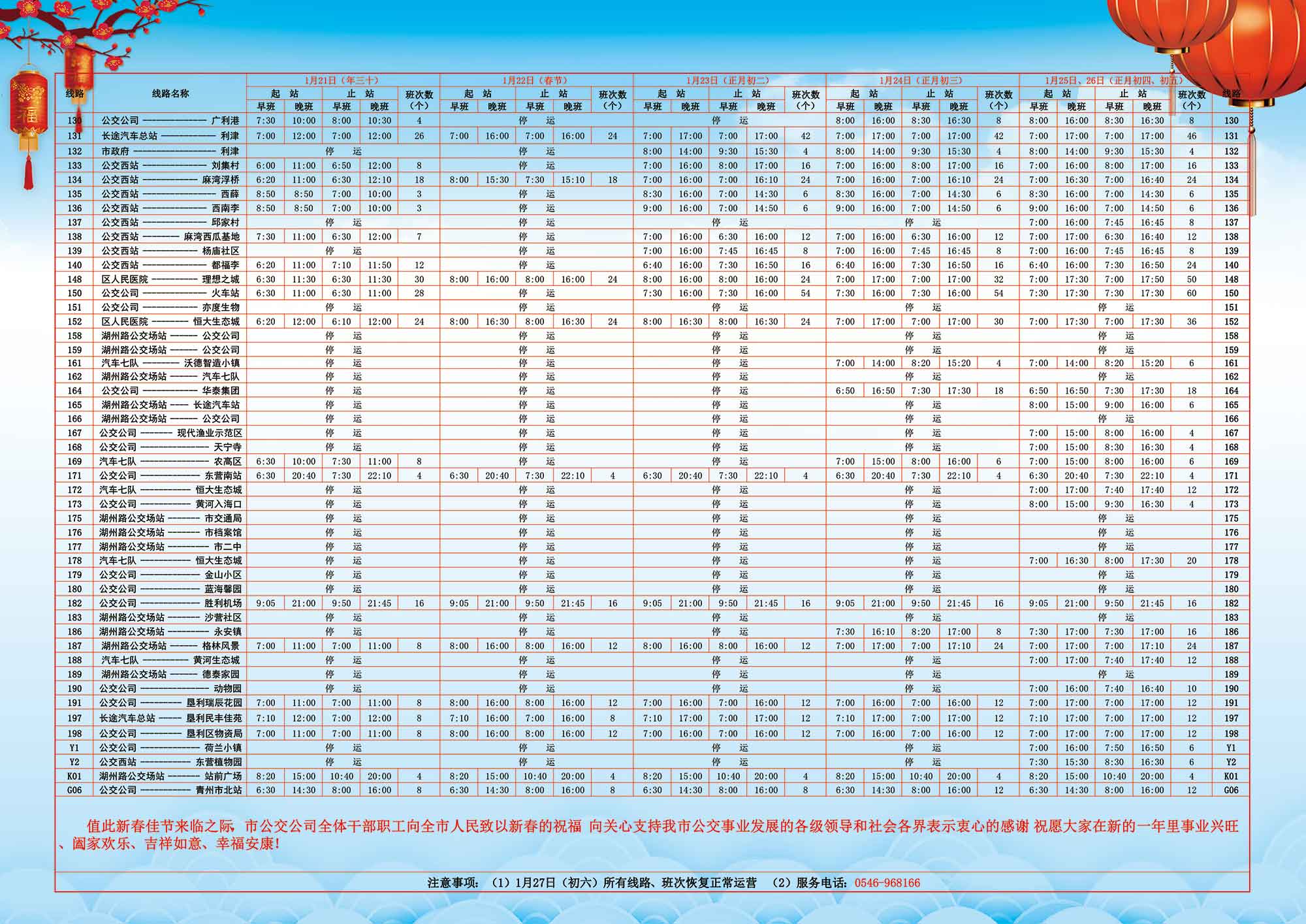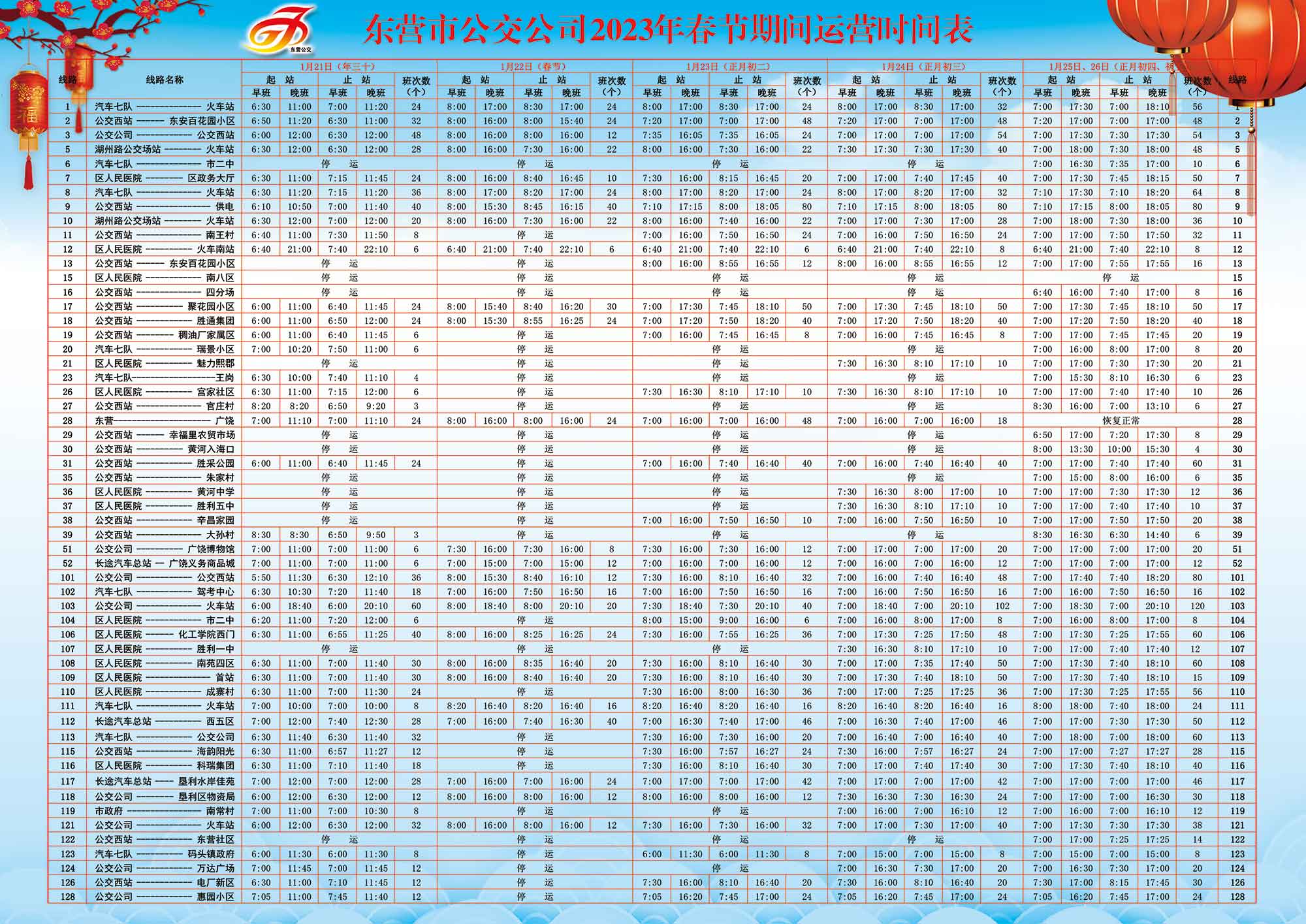 東營市公交公司2023年春節(jié)期間運(yùn)營時(shí)間表