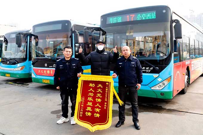 2023年2月7日下午,市民李先生來(lái)到市公交公司汽車(chē)三隊(duì),將一面剛剛定制的“大火無(wú)情人有情,助人為樂(lè)顯真情”的錦旗送到兩位駕駛員手中,向他們英勇救火的善行義舉表示感謝。