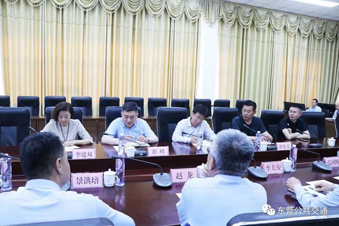 2023年5月11日下午,利津縣交通運輸局一行5人到市公交公司考察交流。市公交公司黨委書記趙龍同志主持座談會,黨委委員、副經(jīng)理景洪培,黨委委員、計財科科長李大安以及相關(guān)科室負責(zé)同志參加交流會。