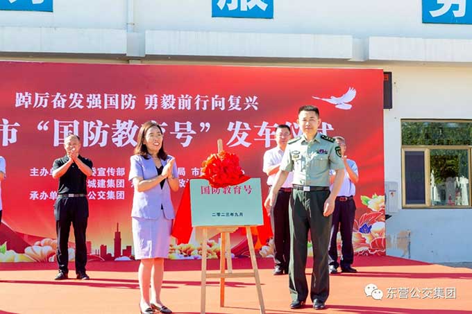 2023年9月14日上午,東營(yíng)市國(guó)防教育號(hào)發(fā)車儀式在市公交集團(tuán)隆重舉行。市委宣傳部副部長(zhǎng)邱家梅出席儀式并宣布發(fā)車,市交通運(yùn)輸局黨組成員、副局長(zhǎng)戴景鵬致辭,東營(yíng)軍分區(qū)政治工作處主任王志輝、市融媒體中心副主任趙國(guó)防、市城建集團(tuán)黨委副書記張文生、市公交集團(tuán)黨委書記趙龍等參加發(fā)車儀式。