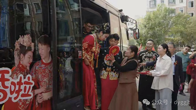新娘老家的親戚朋友大多是第一次到東營來,他們通過這場婚禮感受到了東營人民的熱情好客,“這里民風淳樸,結婚也是熱熱鬧鬧,孩子嫁到這里我們很放心?!蹦锛胰藢τ跂|營的結婚習俗表示非常欣賞。新娘的好朋友們也有很多遠道而來的,“我們也是第一次在現(xiàn)實生活中見到用公交車當婚車的這種方式,太有趣了。”他們紛紛拍下視頻,要推廣這種節(jié)約而有意義的結婚方式,“公交車車廂空間大、坐的人又多,還可以進行個性化布置,同時能讓家人朋友共享這段浪漫旅途的喜悅,共同見證這一幸福瞬間,更有儀式感與氛圍感。”