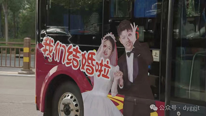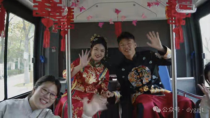 這兩輛公交車跟隨著迎親隊伍,高調(diào)得“秀恩愛”,吸引了無數(shù)的目光和祝福。寬敞的車廂,可以輕松容納一眾親朋好友,笑聲、祝福聲此起彼伏,為新人的幸福時刻,增添了更多的溫馨色彩。
