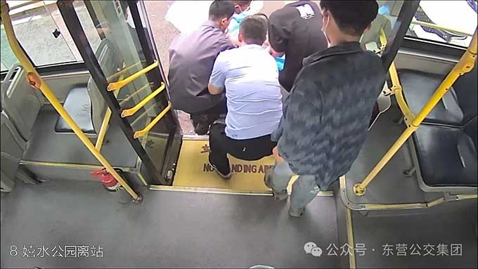 6月2日晚高峰,東營街頭車水馬龍。17時35分,8路公交駛離東趙大廈站,司機(jī)高希明從后視鏡發(fā)覺有些異常:一名剛換座的乘客低垂著頭,臉上也不正常,緊接著身體緩緩滑落在車廂地板上。